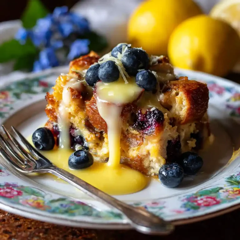 Blueberry Lemon Curd Bread Pudding is one of those timeless desserts that brings sunshine to the table, no matter the season. The moment the scent of lemon and vanilla fills my kitchen, I’m reminded of spring afternoons when my grandmother would bake sweet bread puddings with bursts of fruit. Her recipe was simple, but the balance of tangy lemon curd and juicy blueberries made every bite unforgettable.