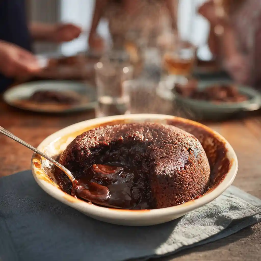 There’s something magical about serving cake with chocolate pudding straight from the oven the pudding still bubbling, the air rich with cocoa. This dessert is best enjoyed warm, when the sauce is glossy and the cake tender. Each spoonful brings a rush of melted chocolate and comforting sweetness.