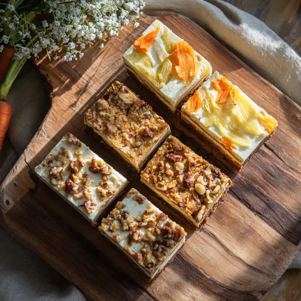 You can add two to three tablespoons of well-drained crushed pineapple to the carrot layer. This creates extra moisture and subtle sweetness. However, be careful not to add too much liquid, or the bars may bake unevenly.
