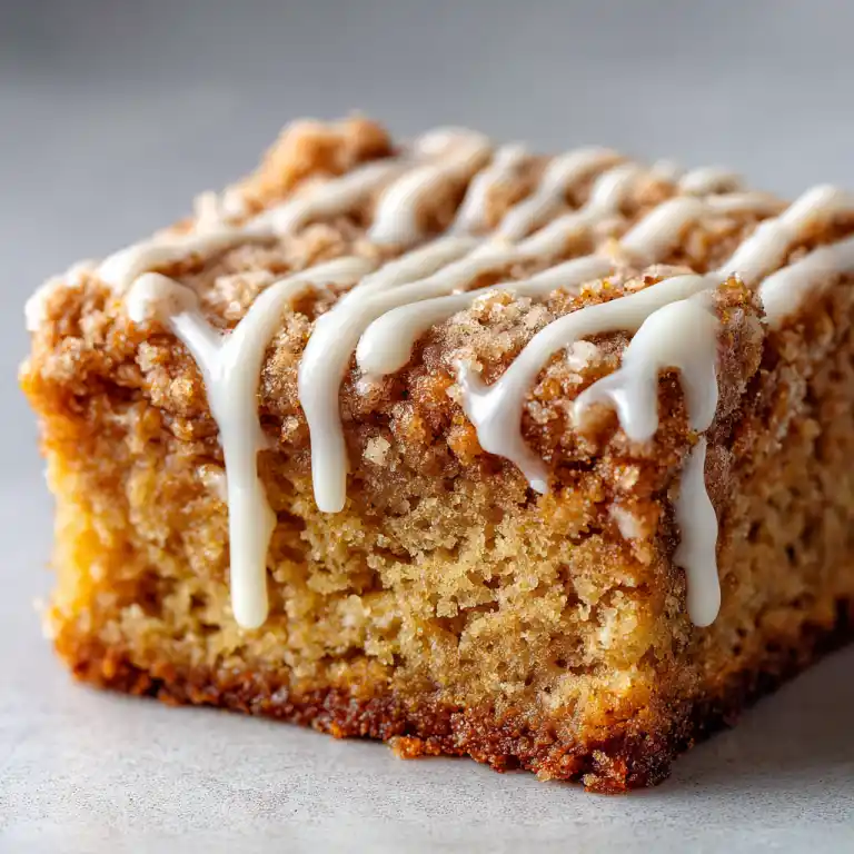 The glaze adds a sweet bakery-style finish that makes the bars look and taste like classic coffee cake.