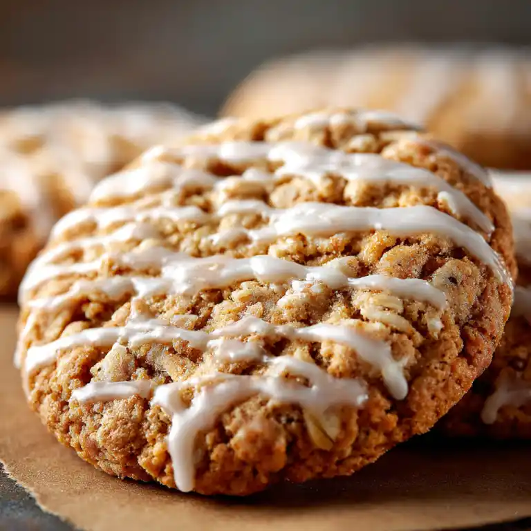 Iced oatmeal cookies are popular because they combine several textures and flavors. The oats create a chewy bite, brown sugar adds caramel sweetness, and cinnamon brings warm spice. The vanilla icing adds a light sweetness that balances the hearty oatmeal cookie base.