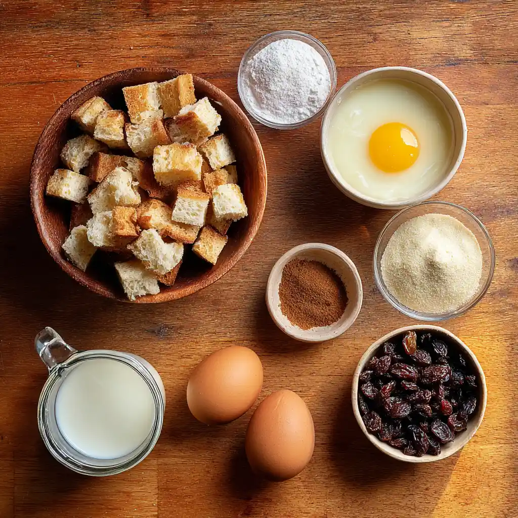 | Buttered Bread (cubed) | 5 tablespoons (about 1 slice) | The heart of the pudding — buttery, soft, and satisfying. |