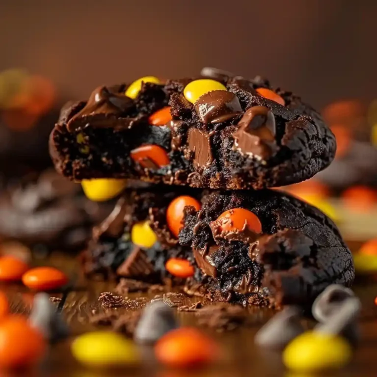 These Reese’s double chocolate cookies are rich, chewy, and packed with chocolate and peanut butter candy in every bite. The cocoa dough, chocolate chips, and colorful Reese’s Pieces create a cookie that is both soft and flavorful.
