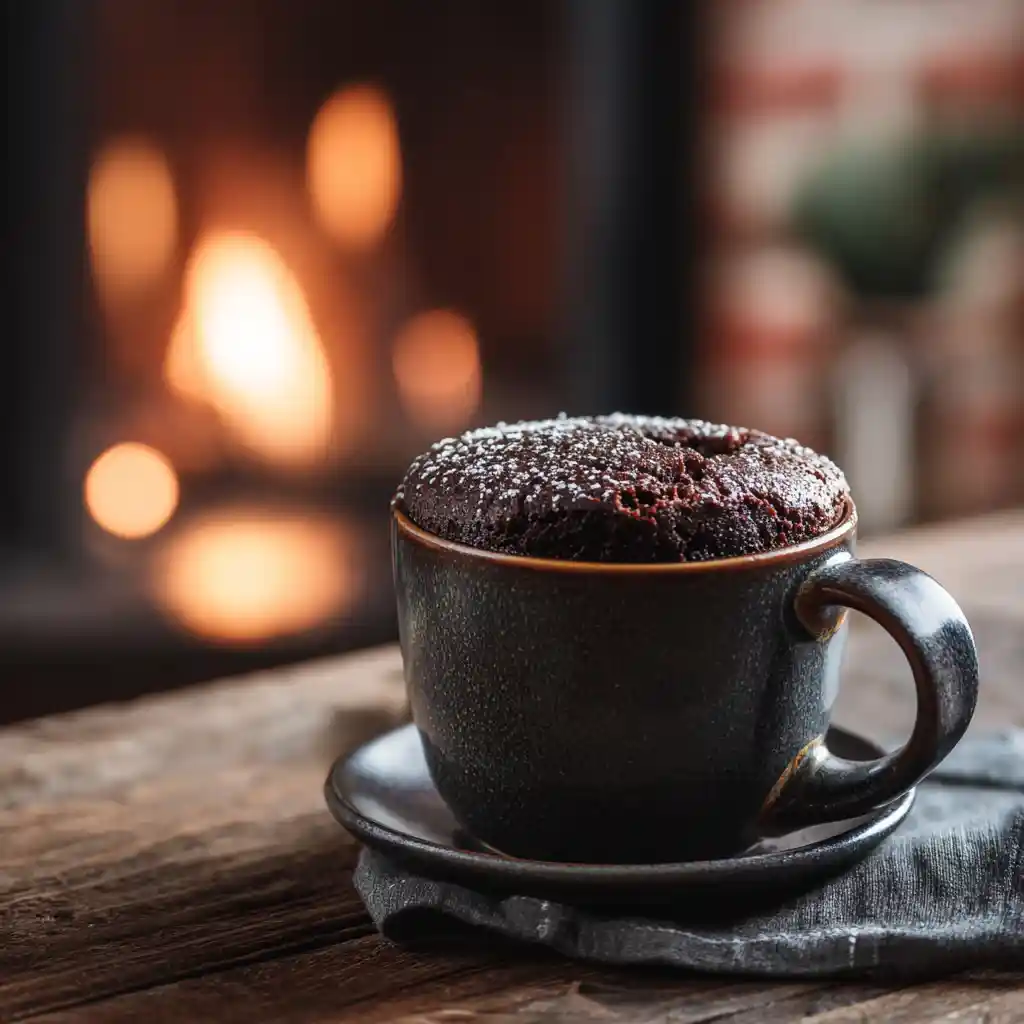 If you want to make it festive, sprinkle crushed nuts, shaved chocolate, or a few fresh berries over the top. The colors pop against the dark chocolate, turning a humble mug cake into a little showpiece.